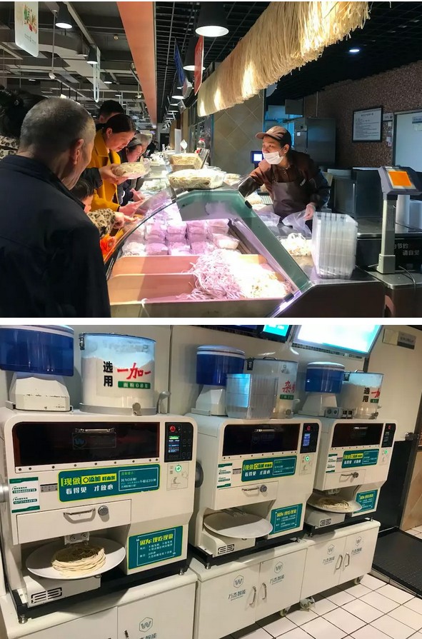2016年下半年,許昌市作為樣板市場(chǎng),正式開始鋪設(shè)鮮面機(jī),不知不覺,已快3年,目前許昌市大范圍鋪設(shè)鮮面機(jī),樣板市場(chǎng)從創(chuàng)立到發(fā)展至今逐漸成熟,經(jīng)過了一段創(chuàng)新實(shí)踐的探索之路。 從進(jìn)駐雜面館到制作出的雜面條成為餐桌上的美味,從入駐胖東來等知名商超到被眾多老百姓熟知并認(rèn)可,從傳統(tǒng)渠道的深耕再到打破常規(guī),入駐中原銀行,為全國的客戶與合作伙伴提供更多可借鑒的發(fā)展新思路。許昌市越來越多的老百姓,已經(jīng)習(xí)慣了鮮面機(jī)的陪伴,甚至,有些依賴。 這期間,有思考也有收獲。現(xiàn)如今,就智能鮮面機(jī)許昌市場(chǎng)的發(fā)展最新進(jìn)展總結(jié)如下,希望與朋友們分享、共勉,能為朋友們帶來更多的借鑒。 一、 面館寵兒,省人工,配比好掌控。 在許昌有很多只賣雜面條的餐館,店里以主打雜面條為主,這類餐館就因?yàn)橘u這種雜面條備受歡迎。而且,雜面條既美味又營養(yǎng),逐漸被越來越多的消費(fèi)者認(rèn)可。其中,許昌的野菜黑豆面和琛晟客來香雜面館是兩個(gè)新開業(yè)不久的雜面館。店老板表示,之所以選用智能鮮面機(jī),一方面,可以有效的節(jié)省人工,降低成本;另一方面,雜面條的配比很重要,智能鮮面機(jī)現(xiàn)吃現(xiàn)做,可以輕松的調(diào)制面條和雜糧的比例,有效的保障面條的口感。此外,面條吃多少做多少,沒有浪費(fèi),為他們解決了做面的大難題。 值得一提的是,在琛晟客來香雜面館擺放了兩臺(tái)智能鮮面機(jī)設(shè)備。一臺(tái)擺放在一樓的進(jìn)門處,可以與消費(fèi)者面對(duì)面實(shí)現(xiàn)互動(dòng)溝通,有效的聚集了人氣。另一臺(tái)則擺在后廚擔(dān)當(dāng)起重任。兩臺(tái)智能鮮面機(jī)設(shè)備同時(shí)工作,成為店中不可或缺的“關(guān)鍵人物”。 二、 現(xiàn)制面條逐漸在商超店中成為流行。