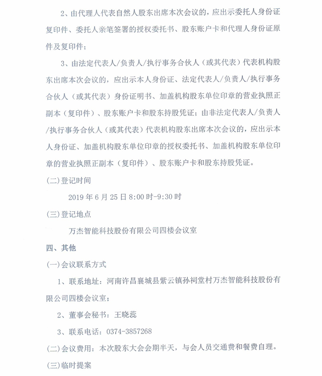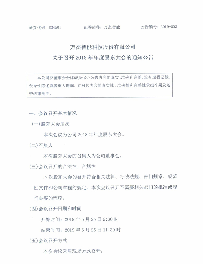萬(wàn)杰智能:關(guān)于召開(kāi)2018年年度股東大會(huì)的通知公告