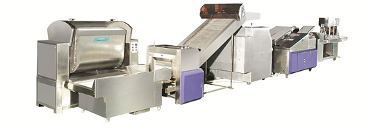 上期小編介紹到,2015年初,北京物美、永輝等各大超市悄然上市了一種馬鈴薯饅頭,備受廣大市民的關(guān)注。馬鈴薯饅頭也就是土豆饅頭,是由中國農(nóng)科院歷經(jīng)兩年多時(shí)間研制成功的。期間,由于土豆粉黏性較高,普通老式饅頭生產(chǎn)線無法滿足生產(chǎn),設(shè)備難題一度成為阻礙土豆饅頭走進(jìn)百姓餐桌上的“絆腳石”。 俗話說,“巧婦難為無米之炊”,沒有得心用手的機(jī)器設(shè)備,怎能生產(chǎn)出“貌美”又營養(yǎng)的馬鈴薯饅頭。在研發(fā)與生產(chǎn)方的聯(lián)合攻關(guān)下,河南萬杰智能科技采用防粘材料,通過溫度調(diào)控降低發(fā)酵速度等技術(shù),研發(fā)出全新馬鈴薯饅頭生產(chǎn)線,使土豆饅頭zui終從實(shí)驗(yàn)室走向百姓餐桌,究竟如何攻克一道道技術(shù)難關(guān),我們先從馬鈴薯饅頭生產(chǎn)線的生產(chǎn)工藝說起。 1、自動(dòng)和面,自動(dòng)輸送,全自動(dòng)化生產(chǎn),提高生產(chǎn)效率。 2、高效節(jié)能,采用連續(xù)壓面,保持面筋網(wǎng)絡(luò)的完整均勻。 3、充分利用微電腦編程控制、光電感應(yīng)技術(shù)代替人工操作。 4、科學(xué)化設(shè)計(jì),操作簡單,維修方便。 5、仿手工揉面,口感細(xì)膩純正。 6、采用優(yōu)質(zhì)不銹鋼及PE活四氟材料,確保衛(wèi)生安全。