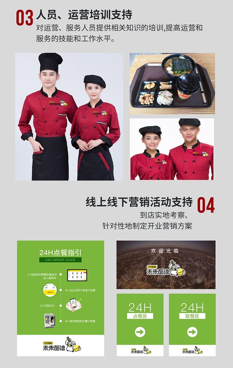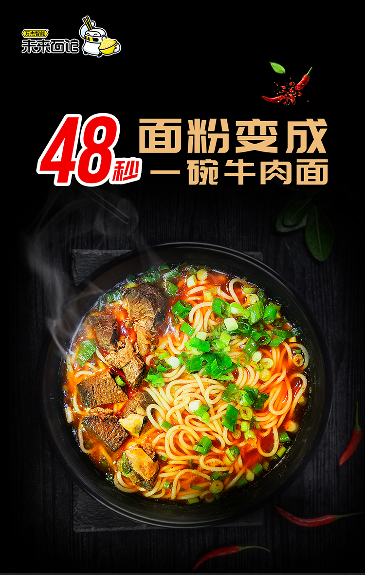 - 可以實(shí)現(xiàn)24小時(shí)不間斷供應(yīng)面、水餃、五谷飲品、飲料等;