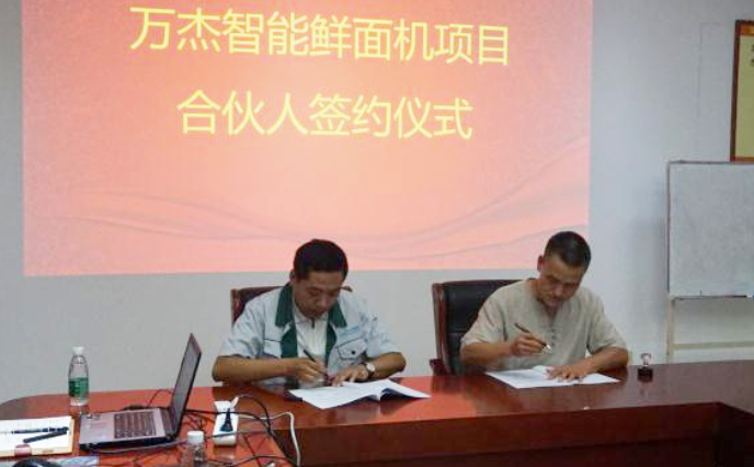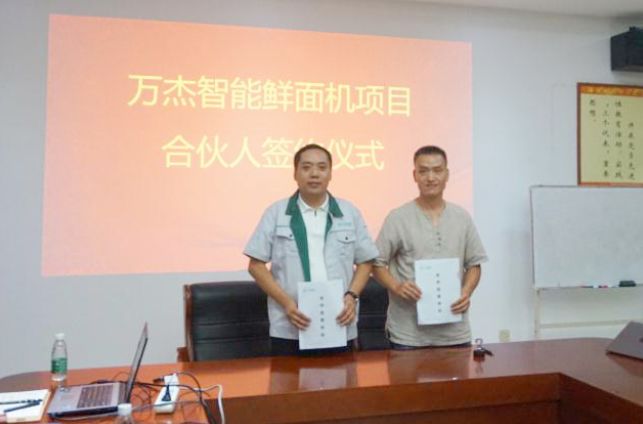 2017年7月28日,萬杰智能又迎來一位合作伙伴---許昌君多衡食品有限公司總經(jīng)理吳敬偉先生,吳總與萬杰智能董事長王曉杰在萬杰智能總部正式簽署了《智能鮮面機合伙人合作協(xié)議》。 簽約現(xiàn)場 許昌市區(qū)是萬杰智能的直營市場,從2016年9月份開始正式開始運營,經(jīng)過不到一年的時間,得到了老百姓和店主的普遍認可,也為合伙人和意向合伙人提供了具備實操性的運營思路。 禹州市緊鄰許昌市區(qū),借著許昌市區(qū)前期的影響力,再加上合伙人吳總(華龍、實佳、新匯面粉運營商)的現(xiàn)有渠道能力和運營能力,相信禹州的老百姓很快就能吃到“現(xiàn)吃現(xiàn)做,放心看得見”的現(xiàn)制面條了。 萬杰智能鮮面機項目擁有強大的產(chǎn)品力,8秒出面的智能鮮面機是行業(yè)首創(chuàng),受22項專利保護,無論是老百姓還是店主還是意向合伙人等一看到產(chǎn)品都深表認同,近期在模式調(diào)整后,吸引了眾多的意向合作伙伴,尤其糧油、面粉的經(jīng)銷商朋友們,因為渠道吻合、運營成本可攤銷、也能增強老百姓與原來其經(jīng)營產(chǎn)品的粘合度,甚至可以依托智能鮮面機為其開拓新的網(wǎng)點。 一項事業(yè),只有負有了社會責任感,只有確確實實能對老百姓有利,才有可能稱之為偉大的事業(yè),而偉大的事業(yè)勢必是社會上足夠多的利益共享、有責任擔當?shù)母魑荒苋酥臼考尤氩庞锌赡軐崿F(xiàn),萬杰智能熱烈歡迎各位伙伴的加入,共同為“主食安全”保駕護航。 |