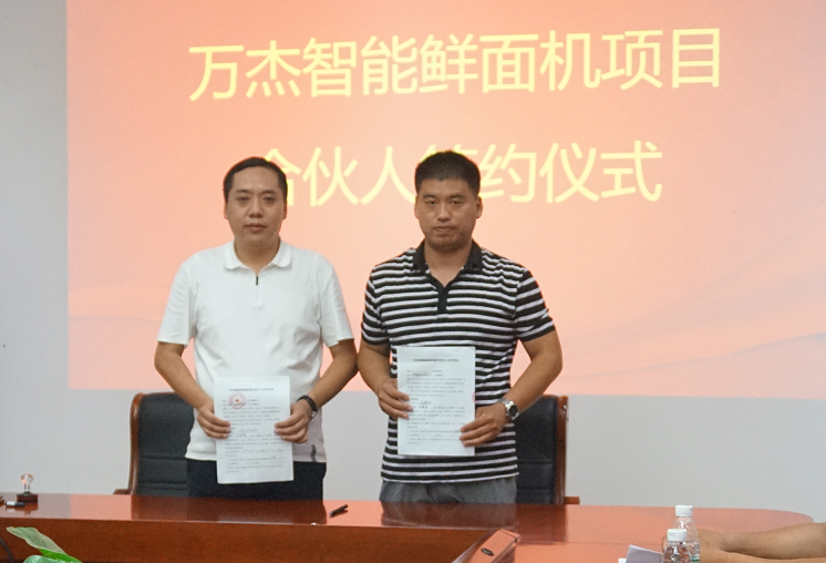 2017年8月4日,萬杰智能總部又迎來山東省兩位合作伙伴,山東省泰安市華任經貿有限公司劉總、山東省曲阜市鑫海商貿有限公司楊總分別與萬杰智能簽署了《智能鮮面機合伙人合作協(xié)議》。 此次,泰安、曲阜兩市的加入,標志著萬杰智能鮮面機項目山東市場正式開啟。至此,萬杰智能鮮面機全國招商突飛猛進,赤峰、新鄉(xiāng)、鄭州兩個區(qū)域、鶴壁、寧波、義烏、溫州、洛陽、大慶、許昌禹州市、泰安、曲阜相繼加入,全國招商工作屢獲佳績。 萬杰智能董事長王曉杰與山東省泰安市華任經貿有限公司劉總 萬杰智能董事長王曉杰與山東省曲阜市鑫海商貿有限公司楊總 山東省是我國面食大省,尤以打鹵面最為著名和正宗,現(xiàn)制鮮面條的出現(xiàn),將會為當?shù)匕傩彰媸成畹?/font>“安全、健康、營養(yǎng)”創(chuàng)造了更多可能。 得益于主食安全和模式創(chuàng)新,萬杰智能聚集了全國各地的事業(yè)合作伙伴,各個城市的合伙人與萬杰智能共同扛起“主食安全”的大旗?梢哉f,獲得收益,充其量只是門生意,而造福百姓,然后讓所有參與者共同受益,這才可稱得上是一份事業(yè)。萬杰智能鮮面機項目的合伙人正是這樣一支隊伍,做主食安全,為一方百姓,這份既有擔當,又前景可觀的事業(yè),誠邀全國地區(qū)意向合作伙伴。 萬杰智能主食機械——為億萬家庭主食安全服務!
