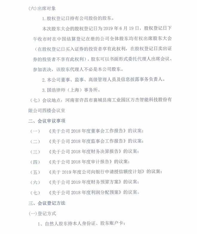 萬(wàn)杰智能:關(guān)于召開(kāi)2018年年度股東大會(huì)的通知公告